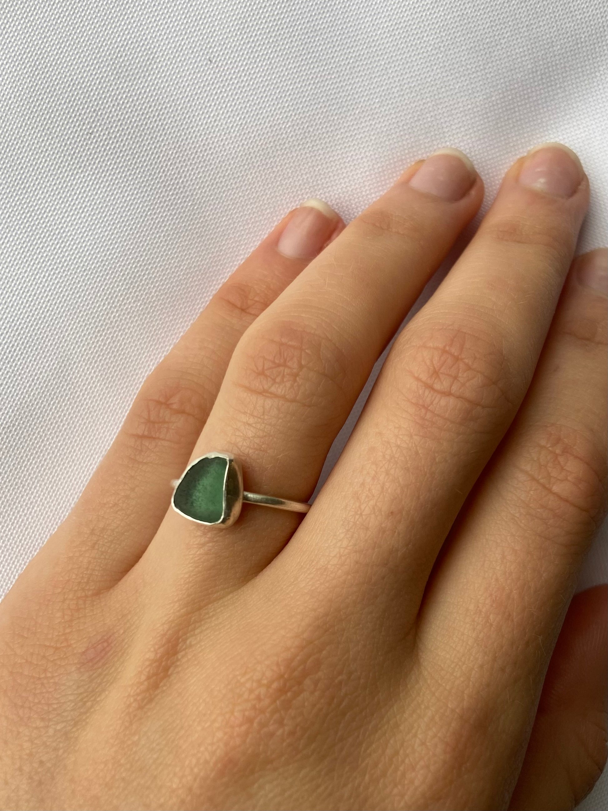 Deep turquoise sea-glass ring, handcrafted in 925 sterling silver. Size L.5/M