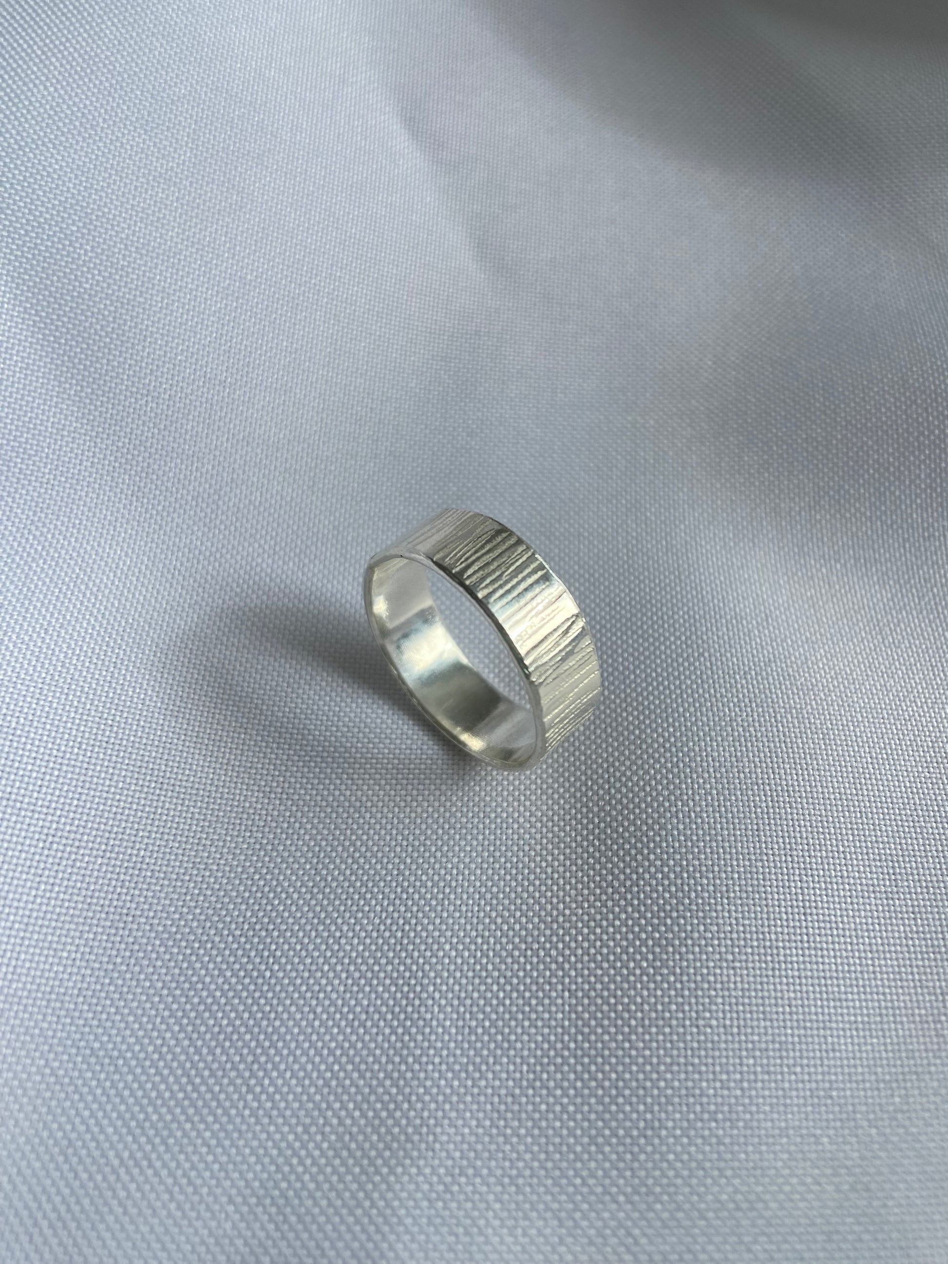 Hammered ring with striped texture, handcrafted in 925 sterling silver.