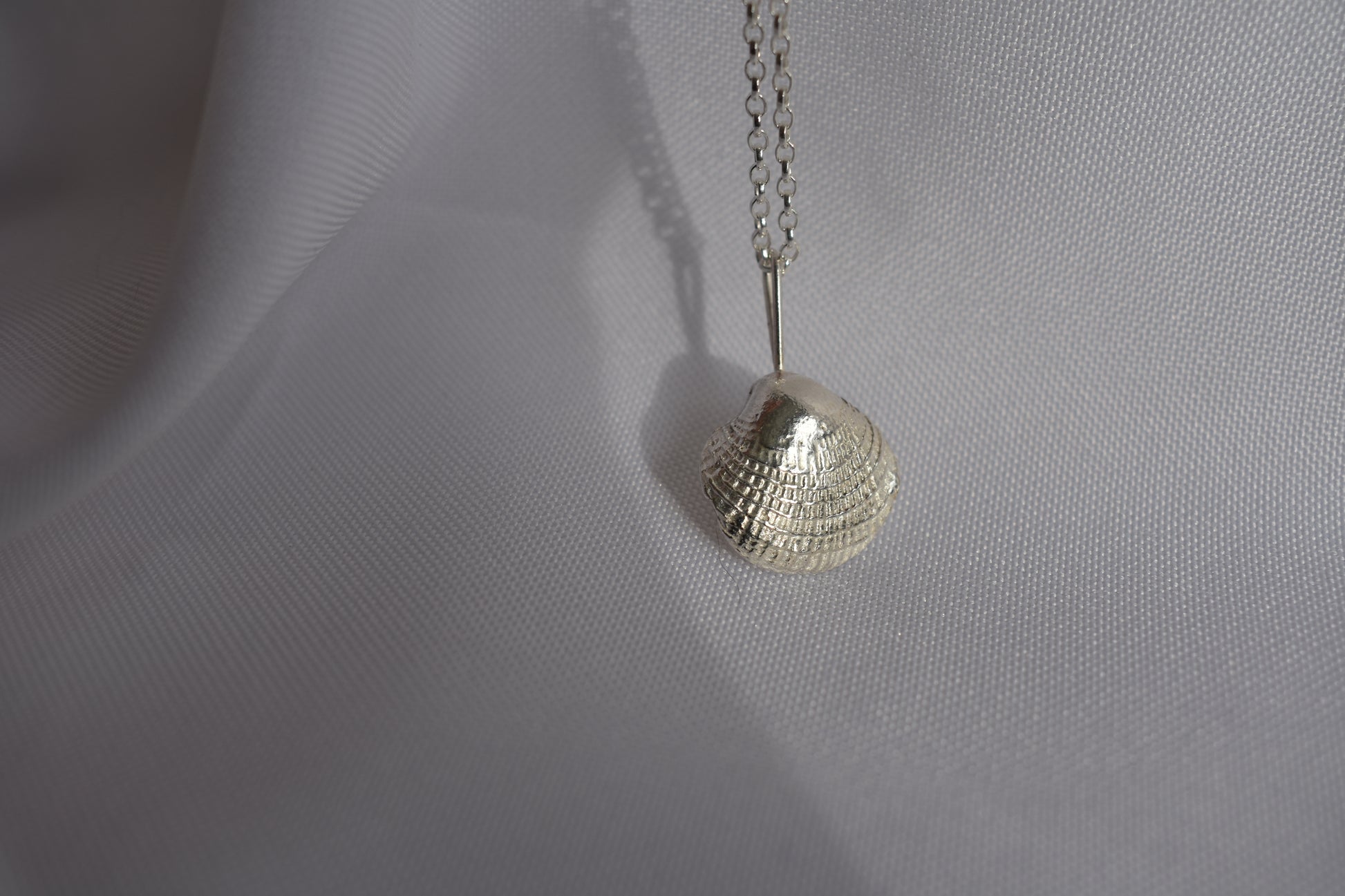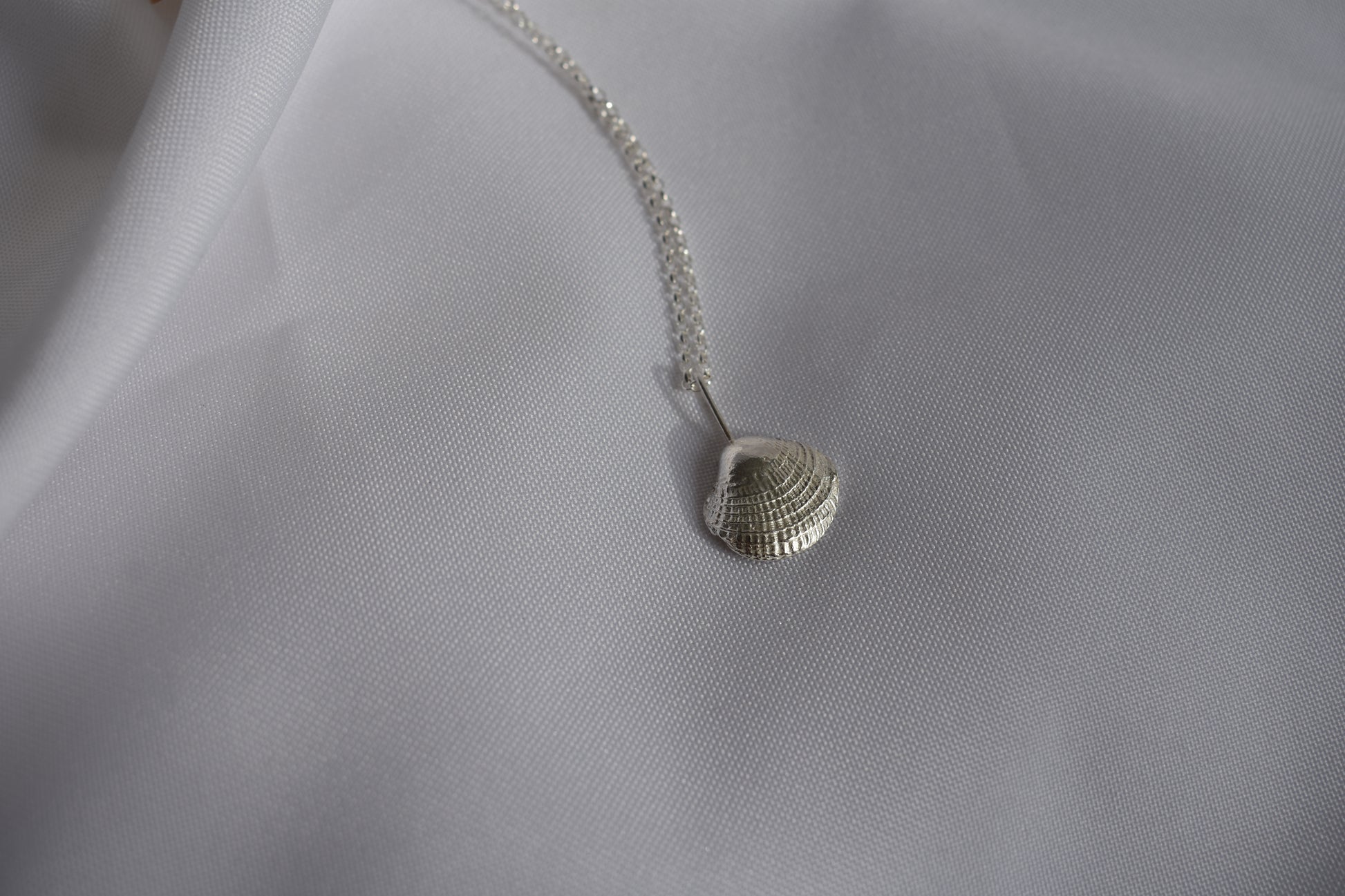 Silver seashell formed in the mould of a real seashell from a Cornish beach using 999 fine silver clay. 18” chain included.